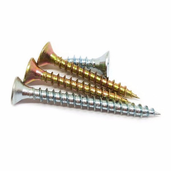Description:DIN 7505,Pozi Drive Doulbe Countersunk Head Chipboard Screws,Hardened,Yellow Zinc Plated or Zinc Plated