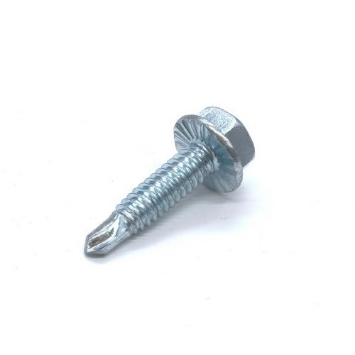 Description:Self Drilling Screws,Indented Hex Washer Head,#2 Point,Serrated,7/16 A/F,Case Hardened,C1022,Zinc Plated